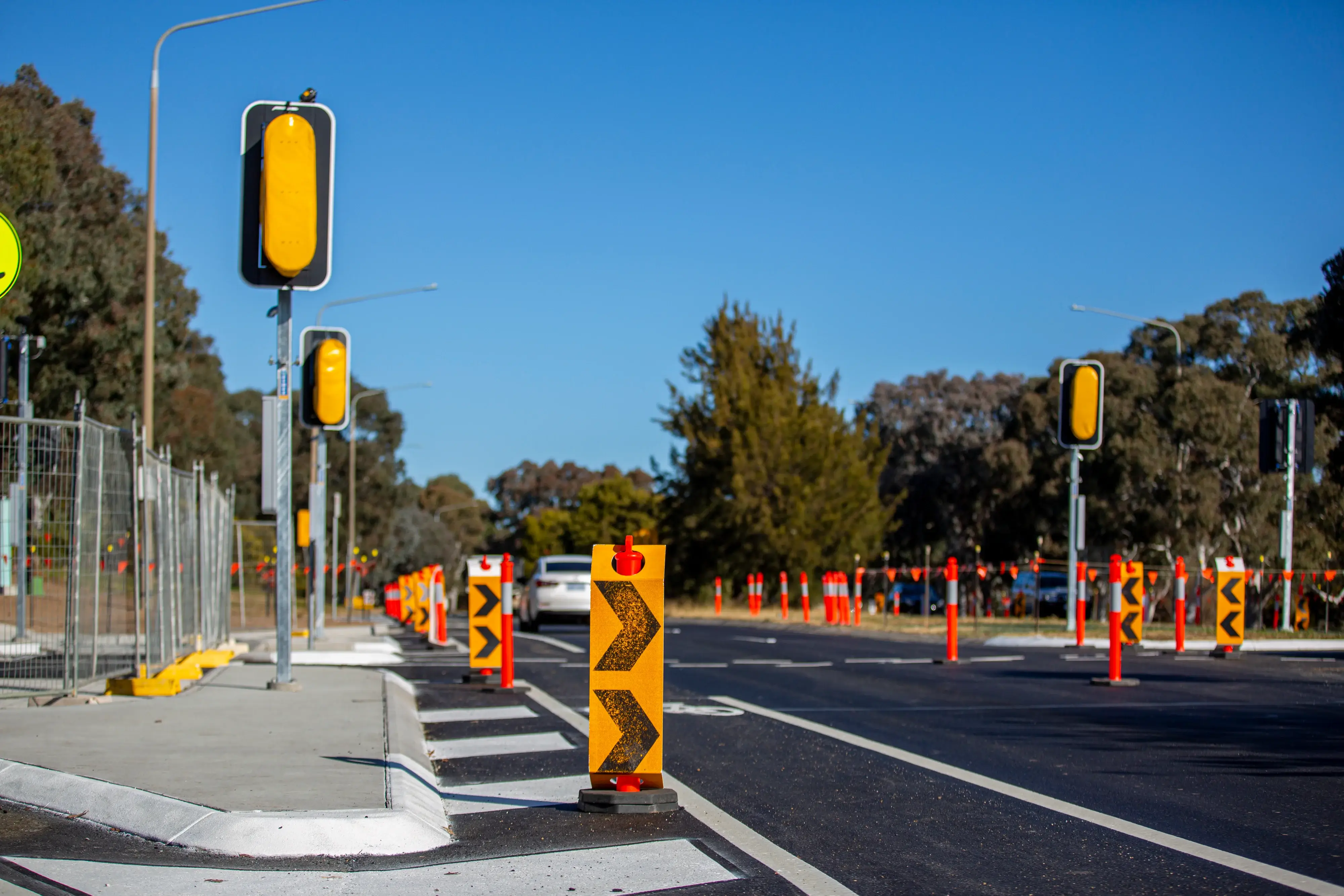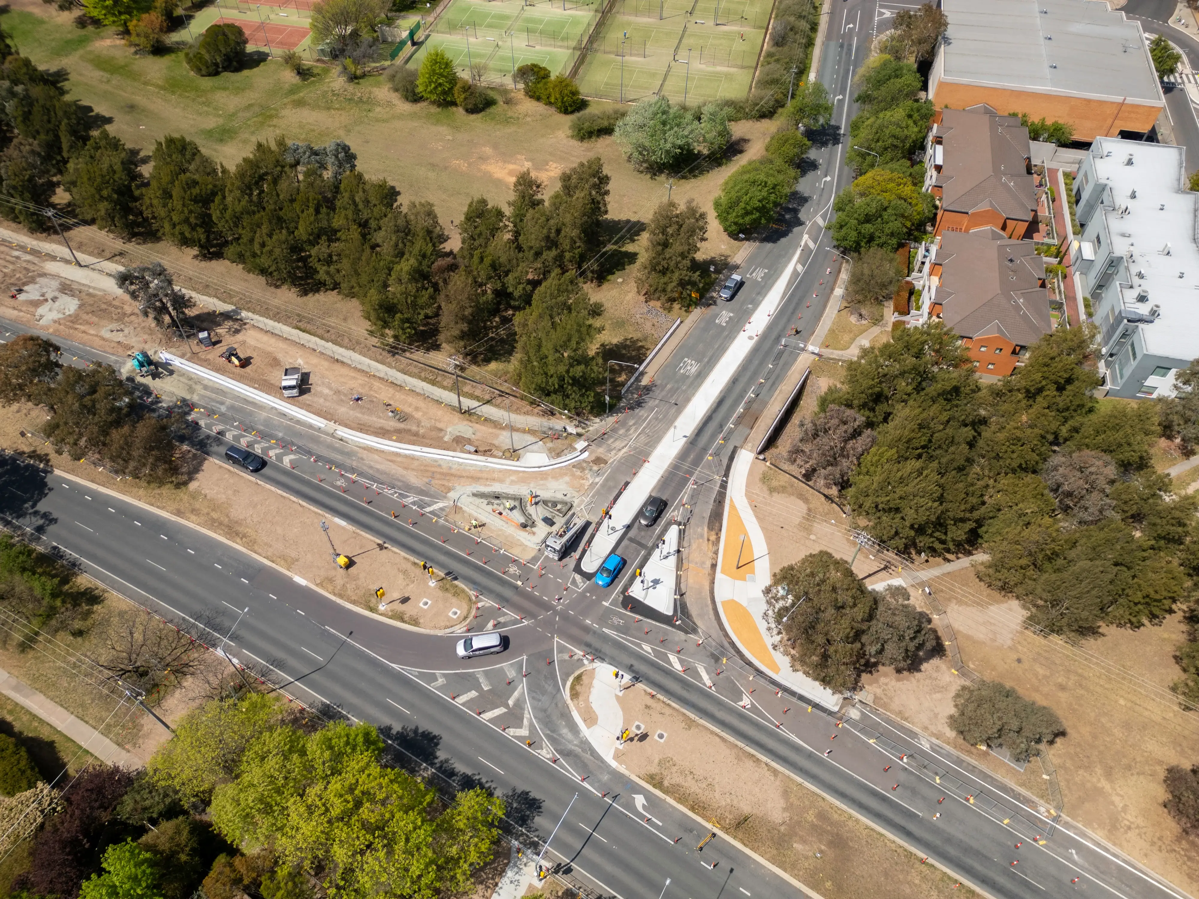 Scope of Works: Reconstruction of intersection under traffic at Cotter Road and Streeton Drive, Weston. Involved extensive traffic management, pavement rebuilding, hydraulics, service relocations and signalised intersection construction.